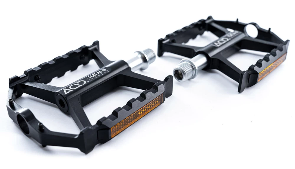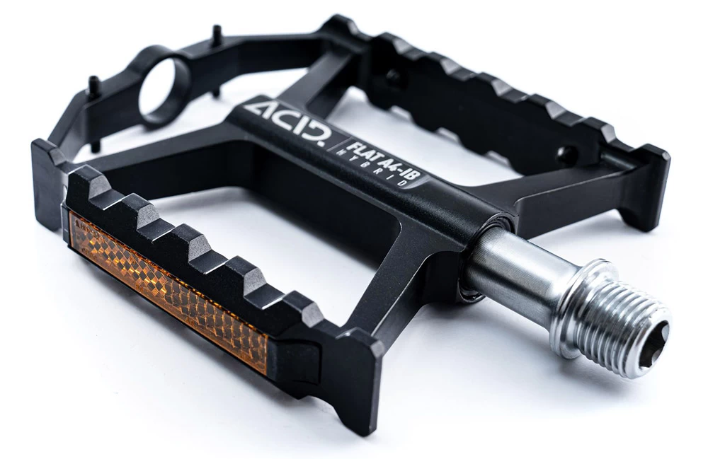 Wenn es im Alltag mal hecktisch wird, musst du dich auf den Halt deiner Pedale verlassen können. Die ACID FLAT A4-IB Hybrid Plattformpedale sind die perfekten Begleiter, egal ob auf deinem Trekkingrad oder dem schnellen Stadtflitzer. Durch die integrierten Reflektoren sehen sie besonders edel aus und machen eine gute Figur.