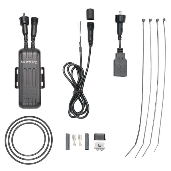 Das USB-WERK ist damit bestens geeignet zum Laden/Betreiben von USB-Geräten aller Art: Mobiltelefon, GPS, MP3-Player etc. Enthält Ausgangskabel mit USB-Buchse.