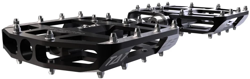 Die Mc-Air von Tatze sind äußerst konkave Plattformpedale für Trailbiker mit Stahl- oder Titanachse. Mit 14 perfekt angeordneten Pins pro Seite und gezielter Überhöhung wirst du nie den Kontakt zu deinen Pedalen verlieren, egal wie extrem du mit deinem MTB auf dem Trail unterwegs bist.